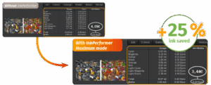 No need to redo your ICC profiles to save on ink! InkPerformer automatically calculates a new color combination to decrease the amount of ink printed on the substrate, without compromising color accuracy.